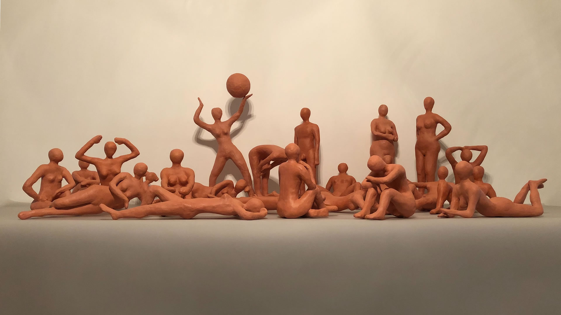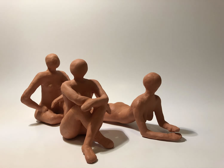 These sculptures in terracotta air dry clay are strongly influenced by my growing up on the beach in Australia. The beach is a key part of the Australian imagination and it is now emblematic of the Australian character - laid-back, egalitarian, hedonistic, fit, informal and free.